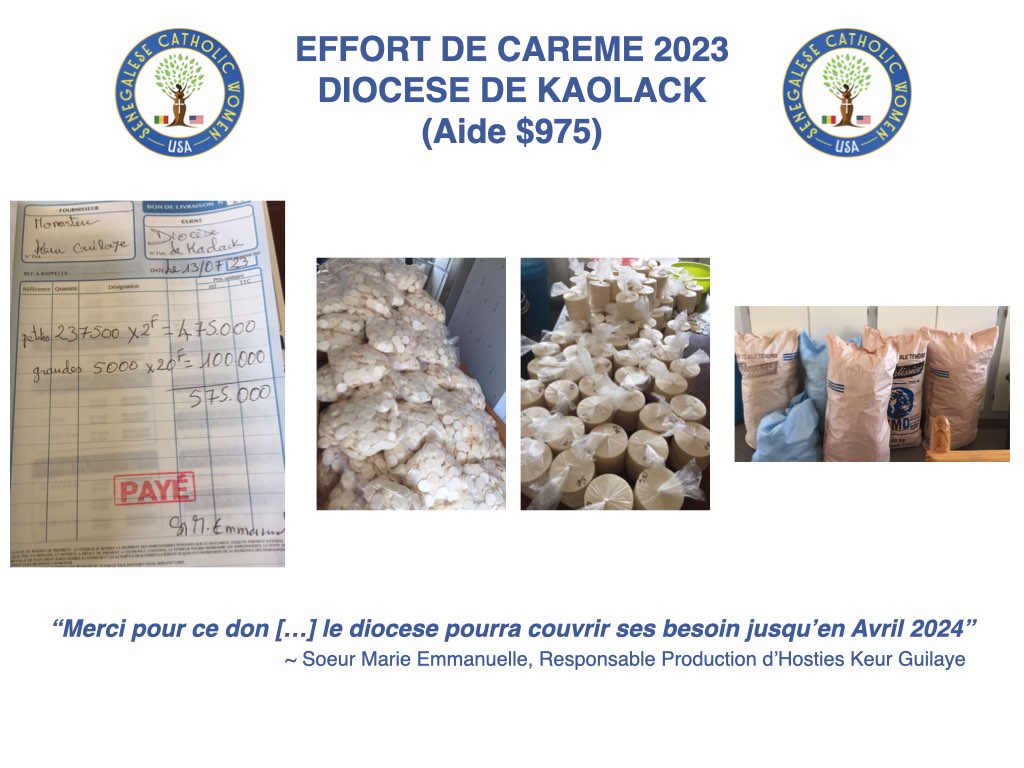 To strengthen the Church’s mission, SECAW has sponsored youth who otherwise couldn’t take part in Senegal’s most emblematic pilgrimage. Additional support has included the procurement of sacred vessels, vestments, and audio-visual tools to enhance worship. Most touchingly, SECAW was able to offer nine months’ worth of Holy Hosts to dioceses that could not afford them.